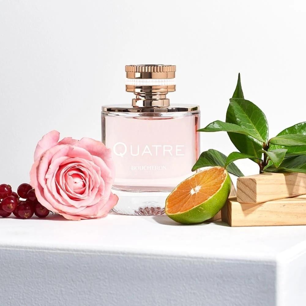 بوشرون كواتر بور فيم من اودوغ هو عطر زهري فاكهي يجمع بين الانتعاش والفخامة، بمكونات غنية تعكس الأنوثة والجمال في كل لحظة.
