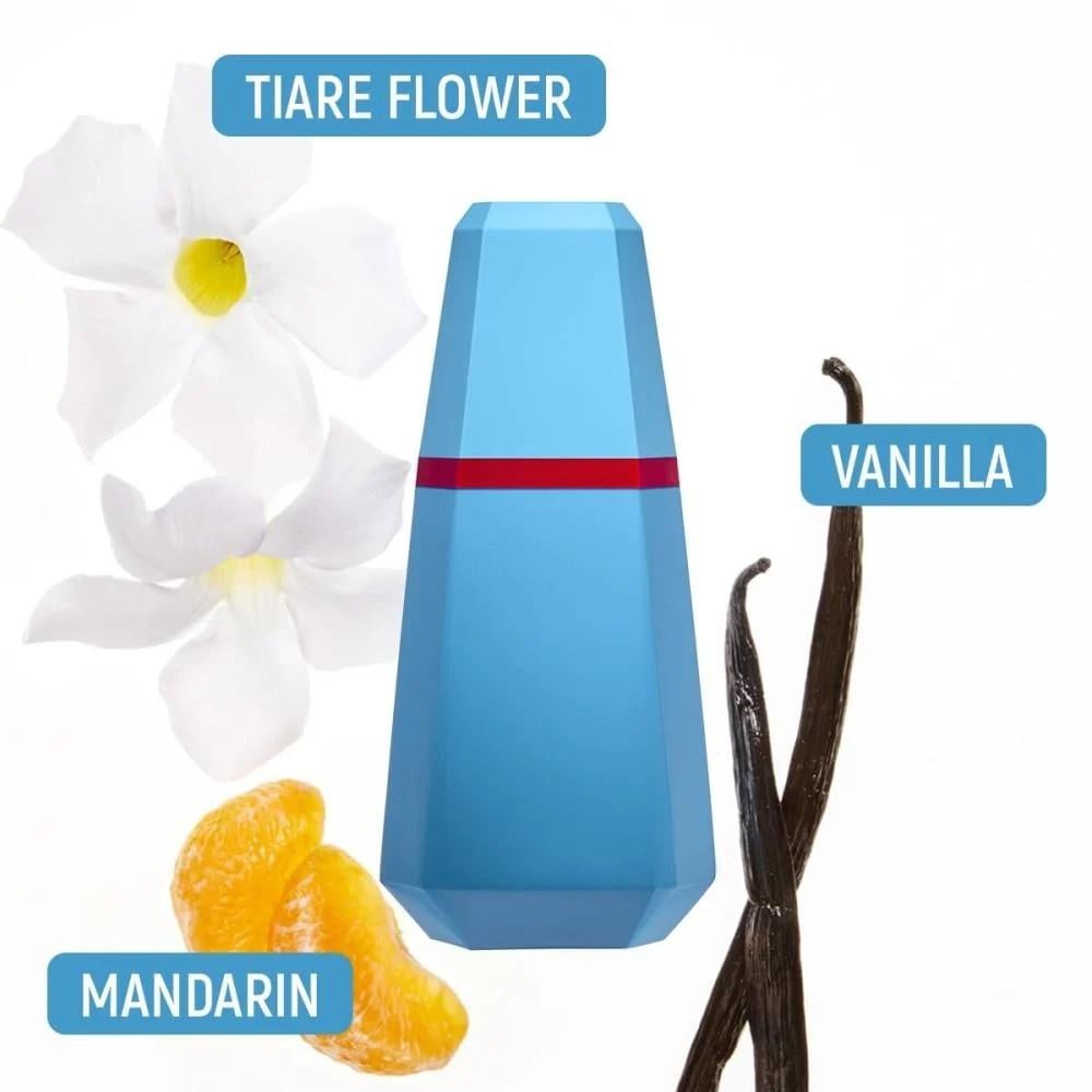 - قلب العطر : الإيلنغ , الهيلوتروب , جذور السوسن , زهر البرتقال , زهر تياري تاهيتي
